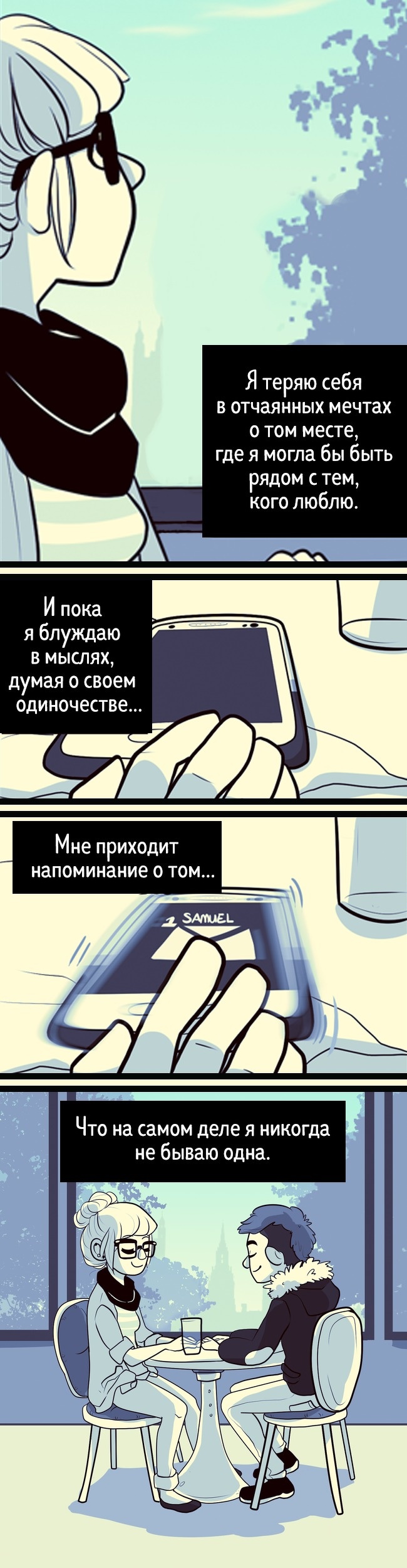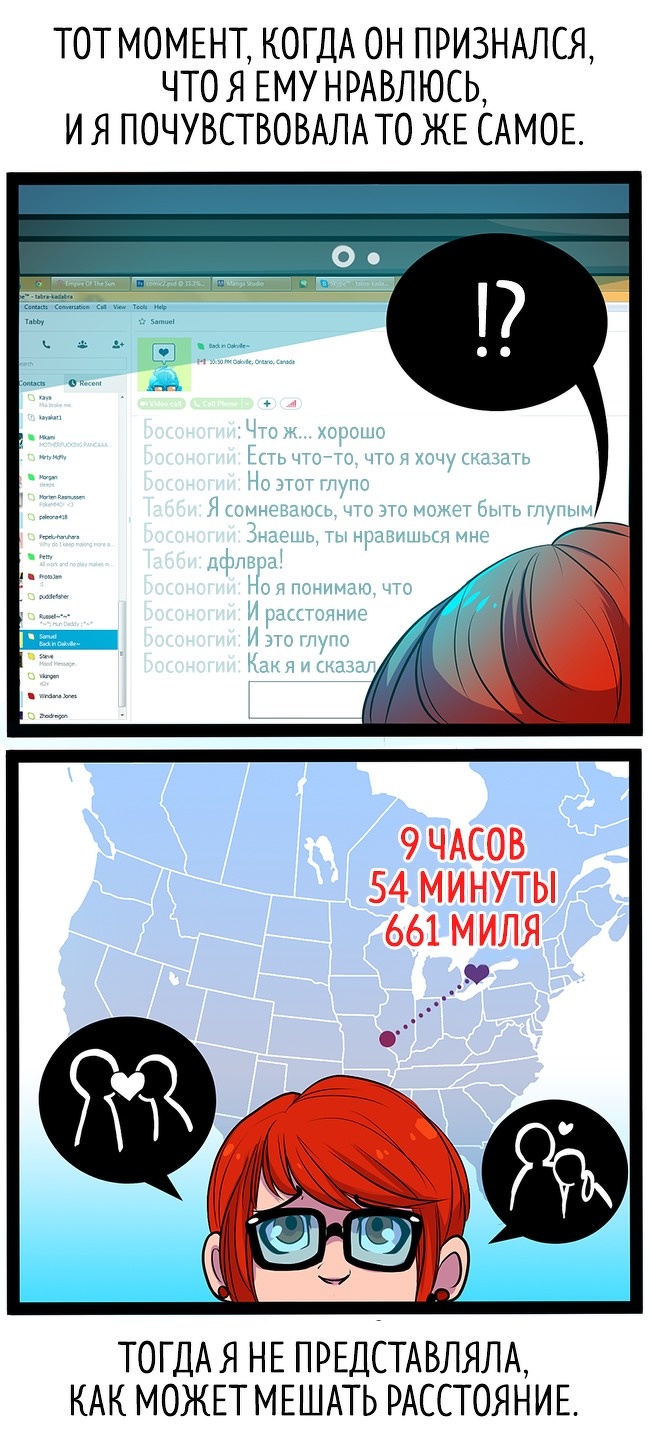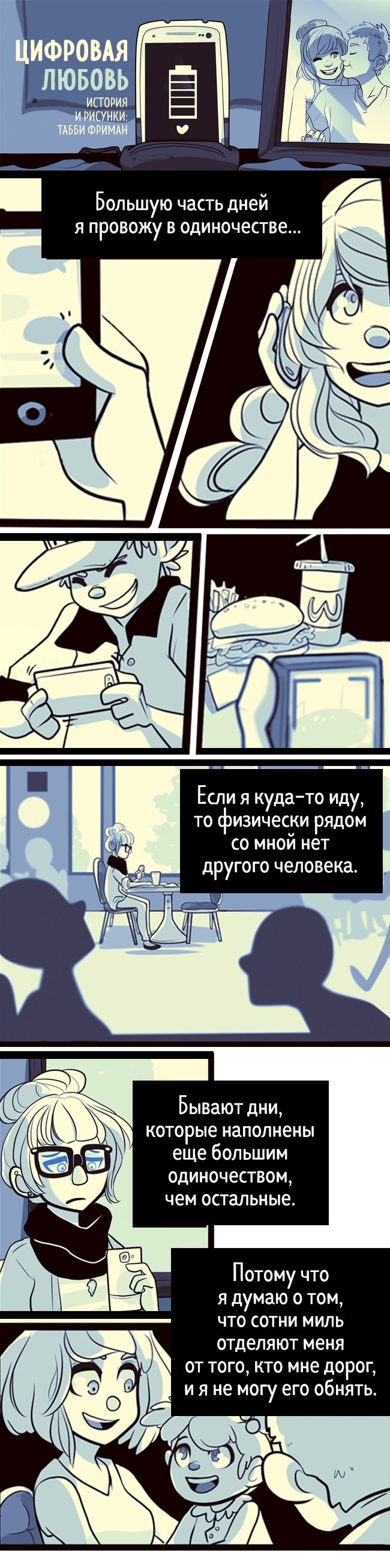 Талановита й іронічна художниця Таббі (tabrakadabra) як ніхто інший знає, скільки суперечок і засуджень в суспільстві викликає тема стосунків на відстані. Але, незважаючи на весь скепсис оточуючих, вона і її молодий чоловік не відмовилися від своїх почуттів. І історію цієї закоханої пари, яку розділяють сотні миль, можна побачити в яскравих коміксах.