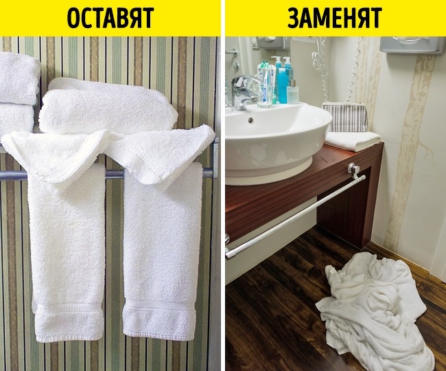 - Що стосується рушників у ванній, їх можуть так і не поміняти, поки ви не кинете їх на підлогу.
