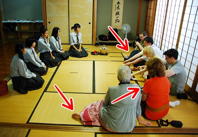Та сама поза з прибраними під себе ногами називається «сейдза», і японці сидять на підлозі тільки в ній. Їм в ній зручно, як в кріслі, але не привчених до неї європейців ноги затікають вже через пару хвилин.