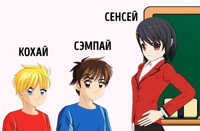- «-семпай» — для звернення молодшого до старшого, поширений серед учнів;