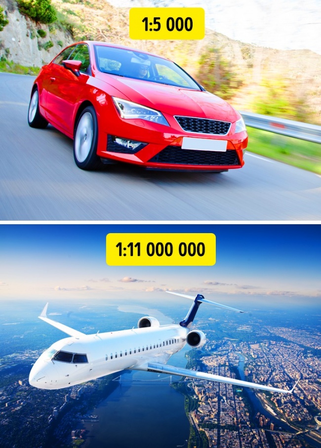 - Пасажирський літак — дуже надійна машина. Для порівняння: ймовірність загинути при перельоті становить 1:11 000 000, а в ДТП — 1:5 000.