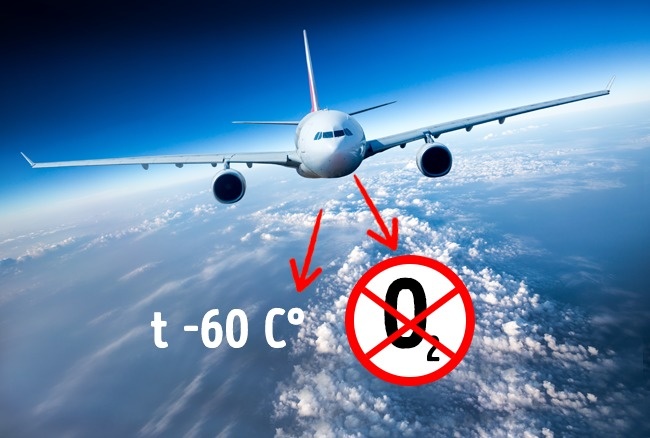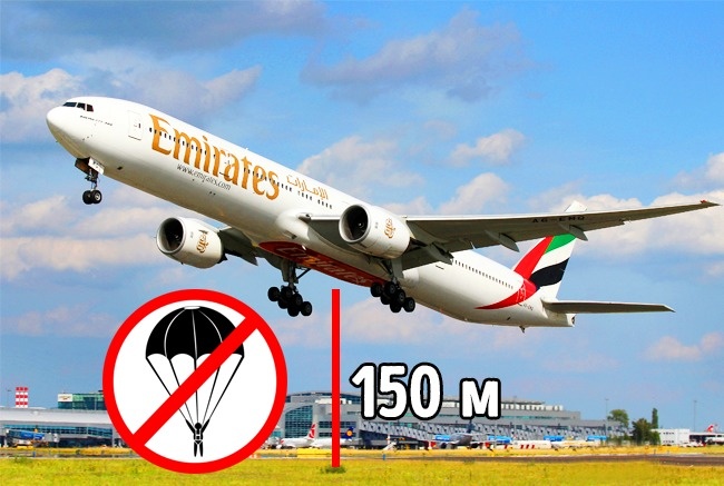 - Літак летить на висоті приблизно 10-12 км зі швидкістю 800-1000 км/ч. Парашут у таких умовах просто не потрібний: за бортом температура від -40 °C до -60 °C, розріджена атмосфера і практично немає кисню. В таких умовах людина просто не виживе.