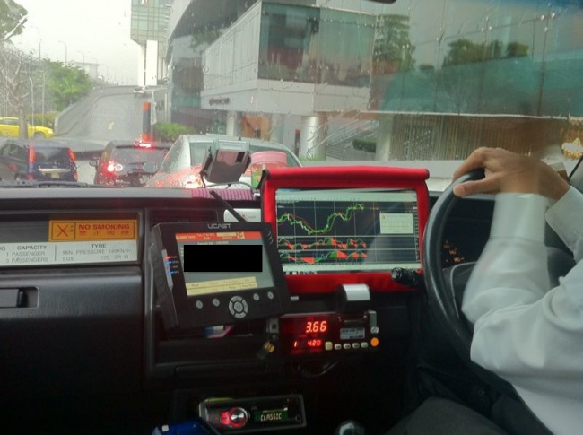 Сінгапур входить в десятку країн, де живуть люди з високим IQ. Може, тому цей таксист грає на біржі, поки на світлофорі червоне світло?