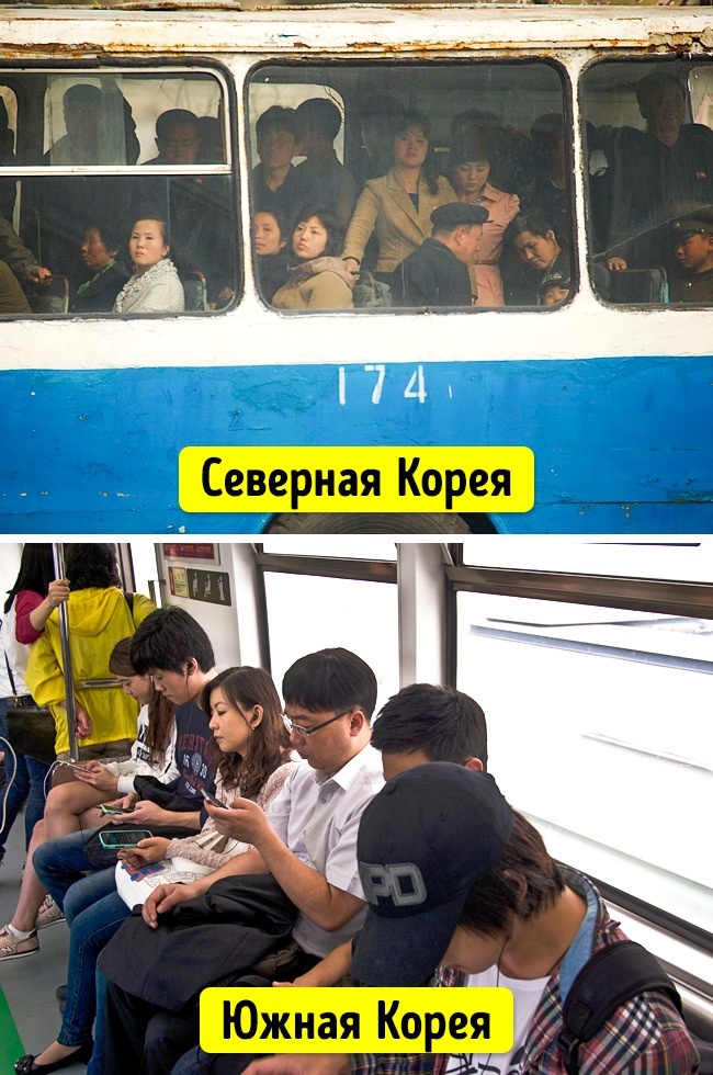 Северянин з лопатою в руках — це сільський житель з інструментом. Южанин з лопатою в руках — це міський житель з телефоном. Але не варто думати, що сіверяни зовсім не знайомі з гаджетами: у Північній Кореї є своя техніка. Наприклад, телевізори з плоскими екранами, ноутбуки, смартфони («Аріран» і «Пхеньян» на основі Android). Виробляються вони в Китаї, а потім на них наклеюють бренди КНДР. Але дозволити собі такі гаджети, звичайно ж, може далеко не кожен.