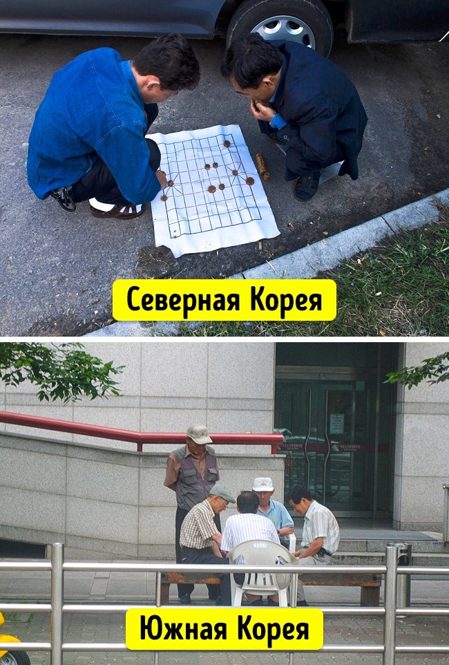 Так корейці проводять перерву на роботі. Як бачите, за 70 років звички не так вже й змінилися. До речі, про роботу: середня зарплата в КНДР — приблизно $ 3, їжа видається за талонами. Середня зарплата на півдні більше рівно в 1 000 разів.