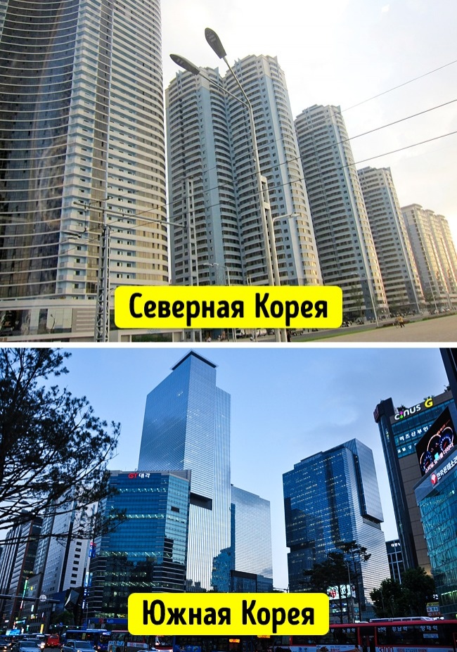 Якщо розглянути столиці з висоти пташиного польоту, то обидва міста справлять враження масштабних мегаполісів. Багатоповерхівки в Пхеньяні практично не відрізняються від житлових кварталів Сеула або Пусана.