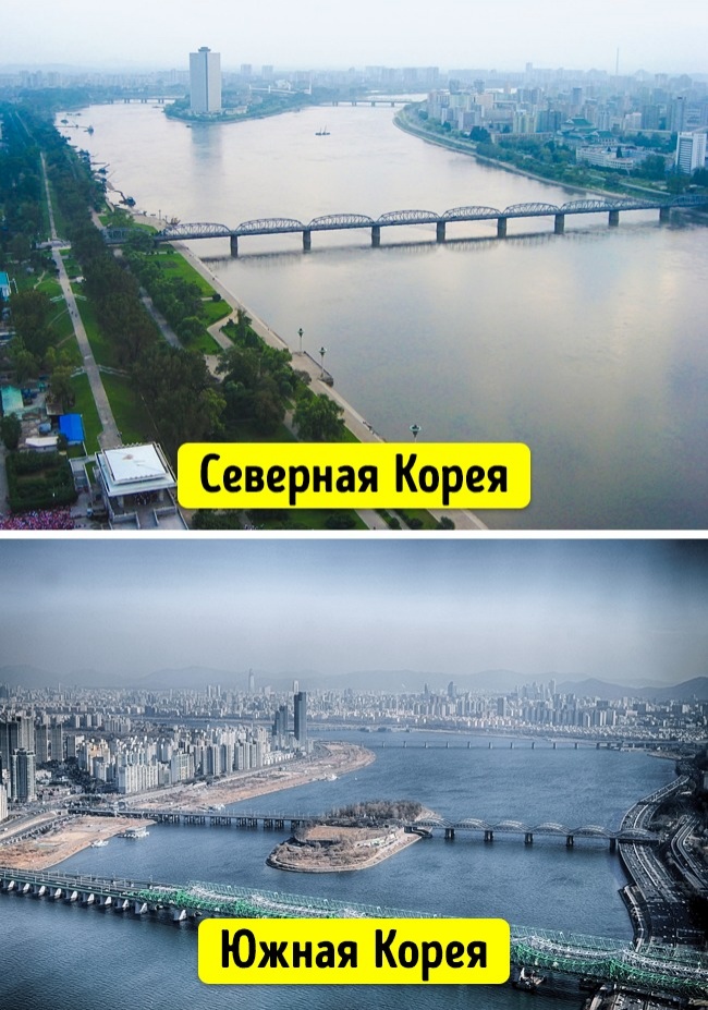 Панорама на головну річку, яка розділяє два міста, також дуже схожа. До речі, мости для Сеула, на відміну від Пхеньяну, — річ трагічна, так як саме на них здійснюється велика кількість суїцидів. Справа в тому, що люди не справляються з високою конкуренцією південного товариства, де немає поняття нормального життя, а є тільки дві мети: самореалізація і успіх.