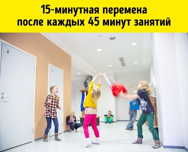 Як би не було добре вчитися, все одно улюблене дитини — зміна. Фінські школярі після кожних 45 хвилин навчання відпочивають не менше 15 хвилин.