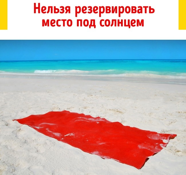 В Італії забороняється залишати на піску рушник, парасольку або стілець, тим самим «забиваючи» місце на пляжі. Доведеться заплатити 200 євро, щоб забрати свої речі. Також представницям прекрасної статі можна засмагати топлес, але тільки лежачи (вставати і плавати в такому вигляді не можна).