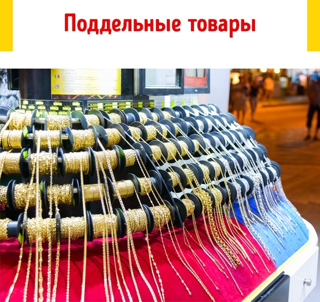 В кожній країні є товар, який користується популярністю, саме його найчастіше й підробляють. Наприклад, в Туреччині — ювелірні прикраси і шкіряні вироби, а на Кубі — ром і сигари.