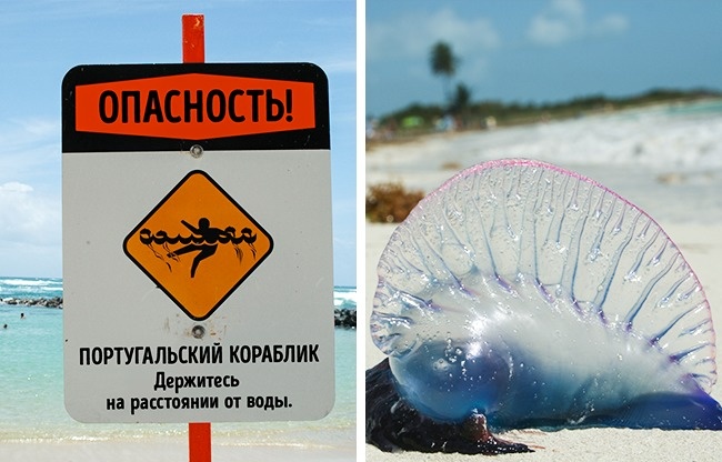 У морях і океанах теплих країн водиться маса небезпечних істот, включаючи різноманітних риб, медуз і корали. Щоб убезпечити себе при купанні варто надягати спеціальну взуття і не чіпати морських мешканців. Крім того, потрібно звертати увагу на заборонні знаки, наприклад виставлений на березі червоний прапор, який означає заборону на купання.