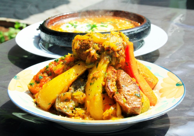 У Марокко м'ясо, як і чай, відіграє важливу роль у відносинах між гостем і господарем. Відмова від м'яса вважається грубістю. Також не слід їсти лівою рукою, оскільки ліва рука вважається «нечистою». Їсти потрібно тільки правою рукою, використовуючи великий, вказівний і середній пальці.