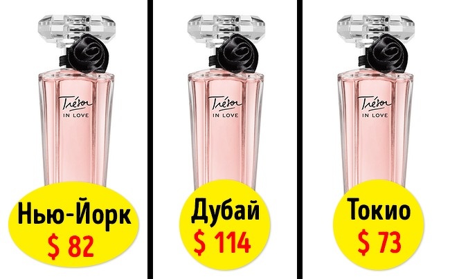 Парфуми Lancome Tresor in Love коштують $ 84 в офіційному магазині (дивіться версію 75 мл), $ 82 в аеропорту Нью-Йорка, $ 114 в Дубаї і $ 73 в Токіо.