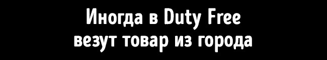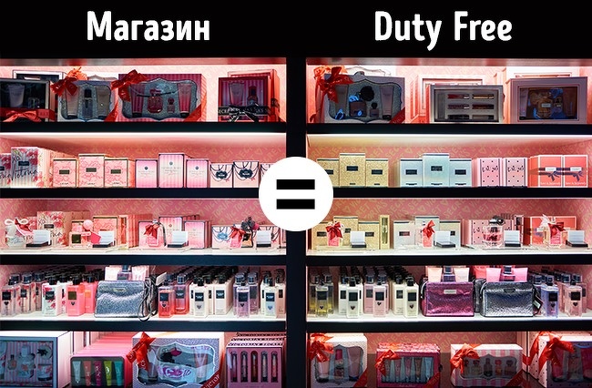 Багато людей закуповуються в Duty Free, тому що думають, що в місті продається підробка, а в Duty Free - оригінали. Колишній працівник одного з аеропортових безмитних магазинів розповів, що іноді буває так, що товар їде спочатку до міського офіційному дистриб'ютору, а вже потім забирають частину для Duty Free. Тобто дистриб'ютор на території країни і в Duty Free в один товару.