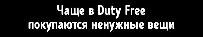 За статистикою, покупки в Duty Free, як правило, більше спонтанні та імпульсивні, ніж корисні. Найчастіше купують алкоголь і сигарети в дорогу або про запас, так як вони не обкладаються митом. На третьому місці - парфумерія. Все інше - це те, що купується без роздумів і чіткої стратегії.