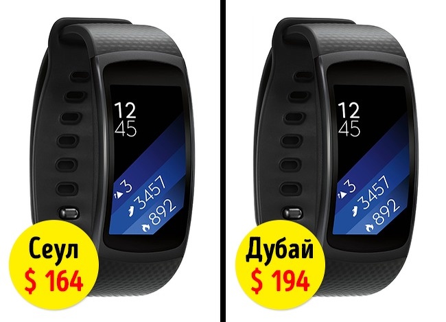 Наприклад, техніку вигідніше купувати в Азії та США, парфумерію - в Західній Європі. Приклад - годинник Samsung Gear Fit, які в звичайному магазині коштують $ 216.