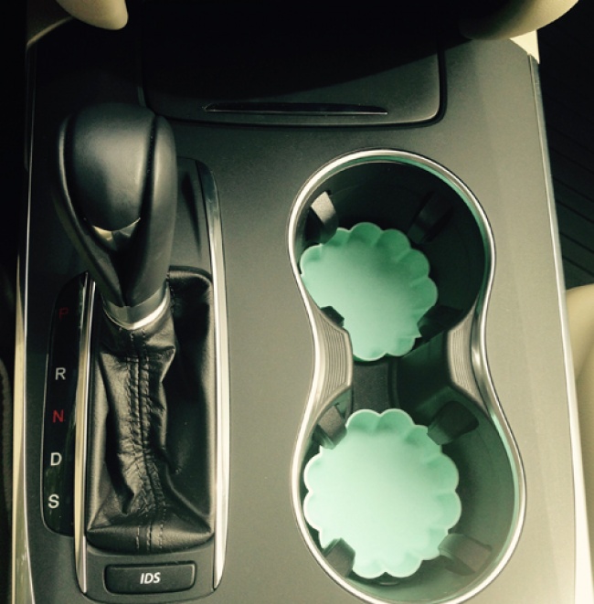 Покладіть в поглиблення для склянок силіконові форми для кексів — так ви зробите ємності більш стійкими і збережіть машину чистою, навіть якщо рідина виплеснеться з склянки на повороті.