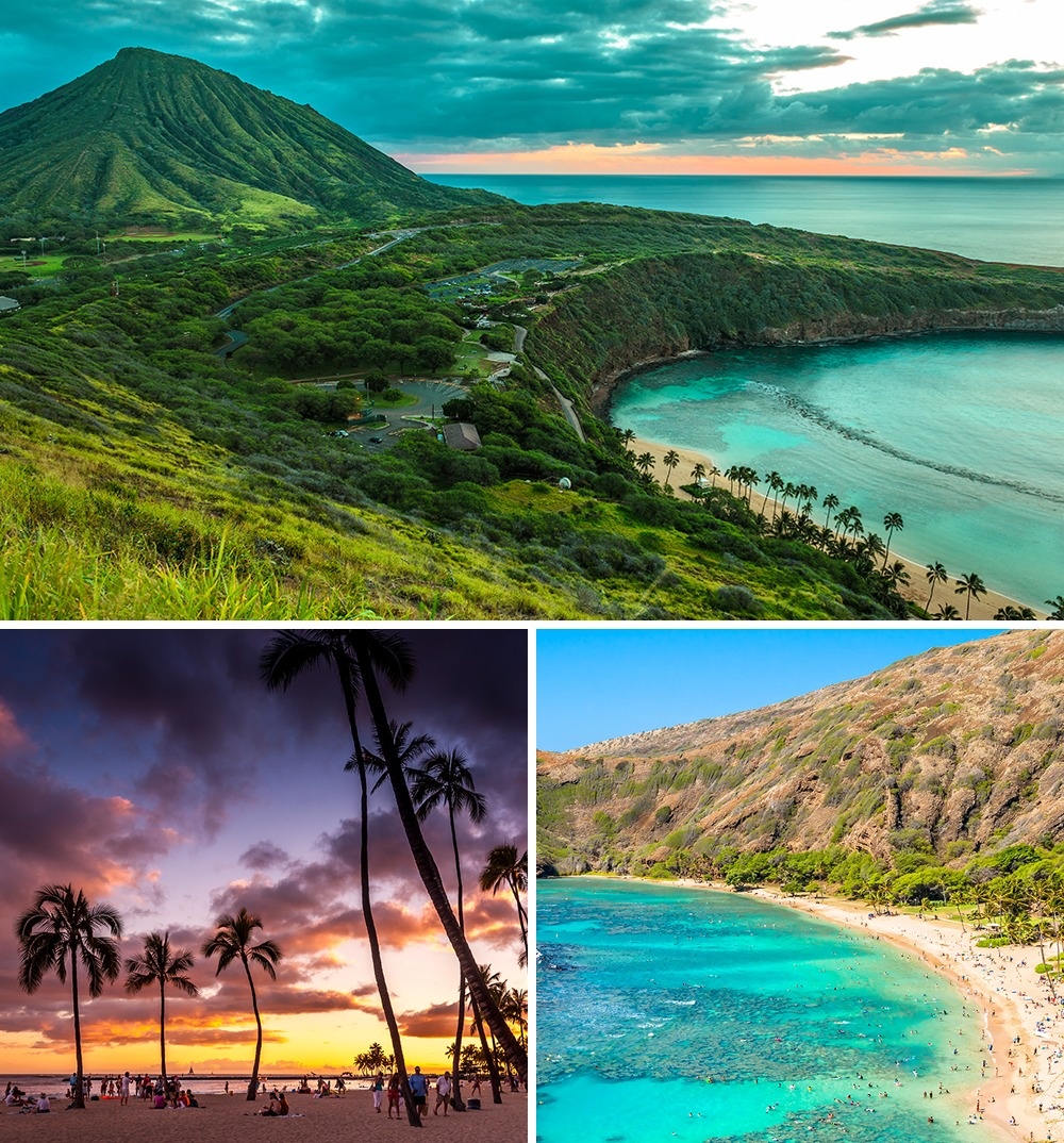 Гавайський пляж Ханаума-Бей унікальний з кількох причин. По-перше, він знаходиться в затопленому кратері вулкана. По-друге, завдяки багатим підводним фауні він є ідеальним місцем для снорклінга і дайвінгу. До речі, для цього необов'язково бути профі: місцеві рибки настільки звикли до людини, що зовсім його не бояться.