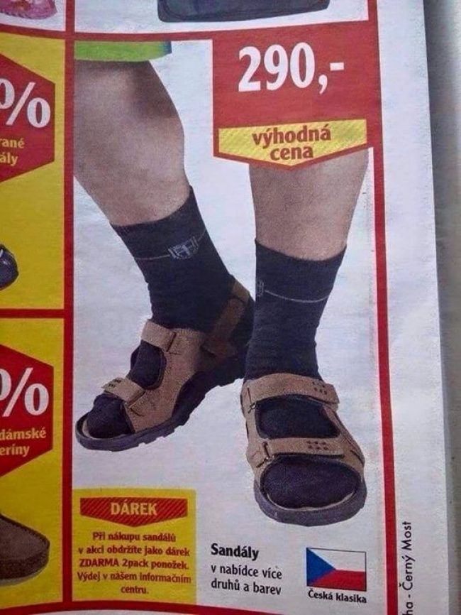 Чехи — ті ще модники. Наприклад, саме тут виник «модний» тренд носити чоловічі сандалі зі шкарпетками.
