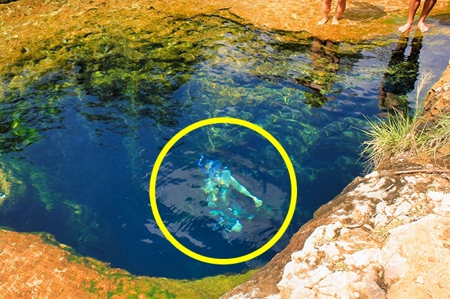 Незвичайна підводна печера діаметром 4 метри, що виходить назовні в одному з водоймищ міста Уїмберлі в штаті Техас. Печера вертикально йде вглиб скель на кілька десятків метрів, після чого розгалужується на підводні коридори, що тягнуться в невідомих напрямках.