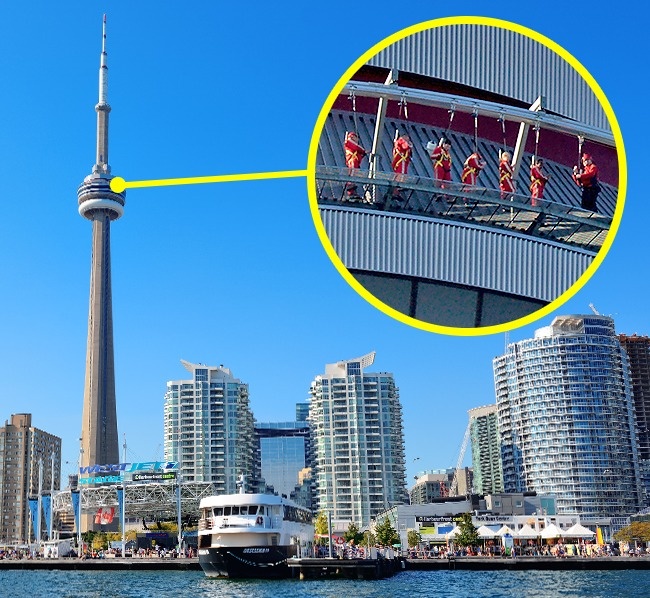 Кожен бажаючий може прогулятися по самому краю телевежі, розташованої на висоті 356 метрів (116-й поверх). Відвідувачів надійно прикріплюють спеціальної страхувальною системою до конструкцій вежі CN Tower, але не намертво, а так, щоб була можливість гуляти уздовж краю, заглядаючи вниз.