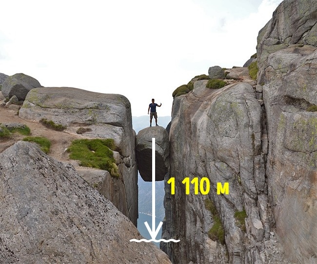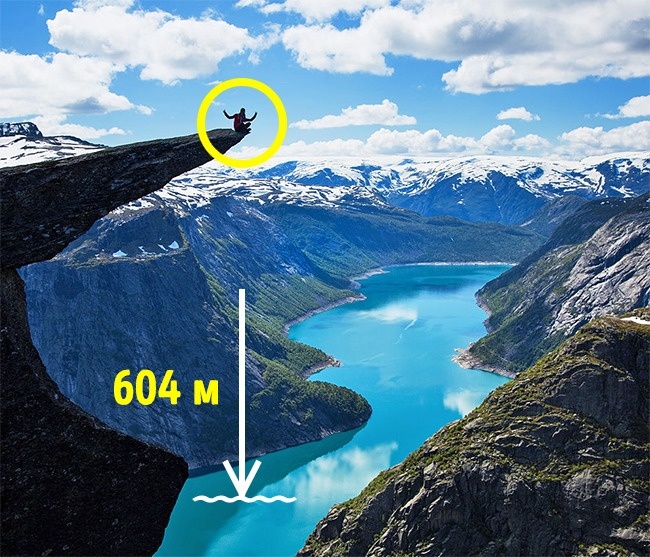 На висоті 604 метри над рівнем моря знаходиться незвичайний уступ, дуже схожий на витягнутий язик. Норвежці стверджують, що форма уступу саме така, як язик у міфічних тролів, тому місце і отримало таку назву. Найсміливіші примудряються не тільки постояти на краю, але й пострибати цілою компанією, перевіряючи «мова» на міцність.