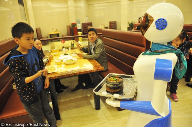 Кафе Robot Dinning Hall в Нінбо, де роботи «служать» офіціантами. Роботи можуть приймати замовлення, розуміти і відповідати на прості фрази