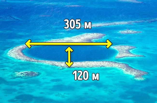 Ця діра — центр Лайтхаус-Рифу, розташованого в Карибському морі. Спочатку це була система печер, які сформувалися ще в льодовиковий період. Велика блакитна діра входить в десятку кращих місць для пірнання.