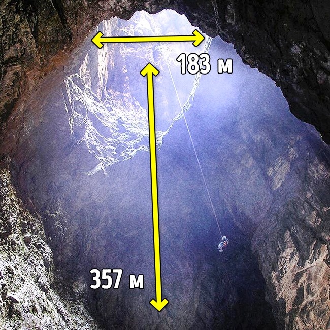 Карстова воронка «Небесна яма» утворилася 128 тис. років тому. Ця воронка є найглибшою в світі і улюбленим місцем людей, які захоплюються екстремальними стрибками з парашутом.