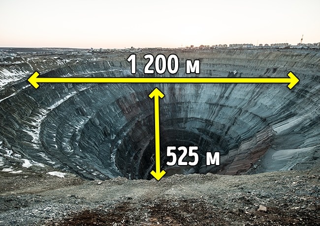 Кімберлітова трубка «Мир» — це друге за величиною родовище алмазів у Якутії. Зараз алмазна руда там видобувається на підземному руднику.