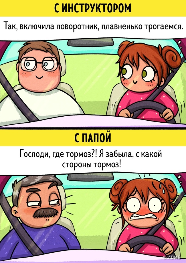 Коли вчишся водити з татом, всі правила і навички вивітрюються з голови як за помахом чарівної палички