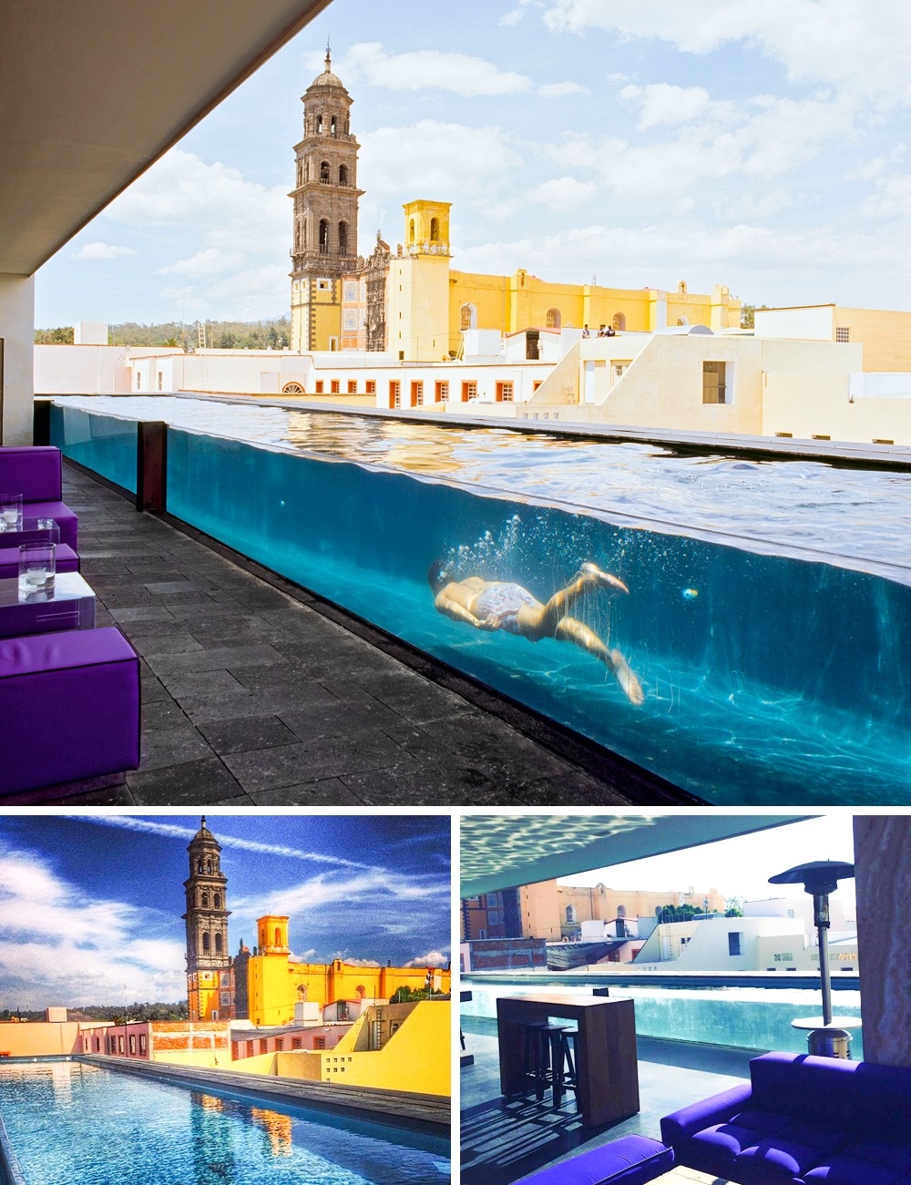Басейн мексиканського La Purificadora Hotel займає приміщення колишньої водоочисної станції і проходить через ресторан і бар. З басейну відкривається вид на місто, внесений у список Всесвітньої спадщини ЮНЕСКО.
