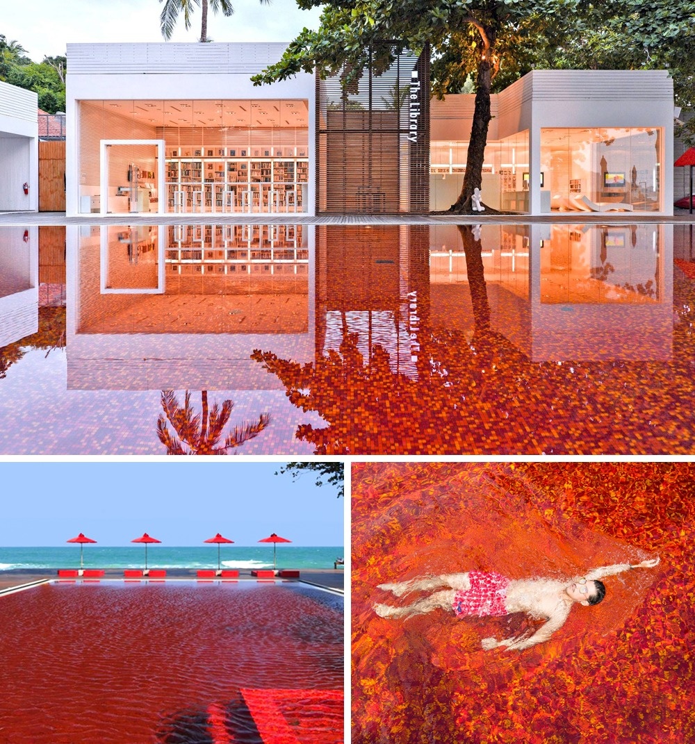 Готель The Library, відомий своєю багатою бібліотекою, прославився ще і завдяки басейну червоного кольору. Червона вода — ілюзія, яка досягається за рахунок кольору кахельної плитки в басейні.