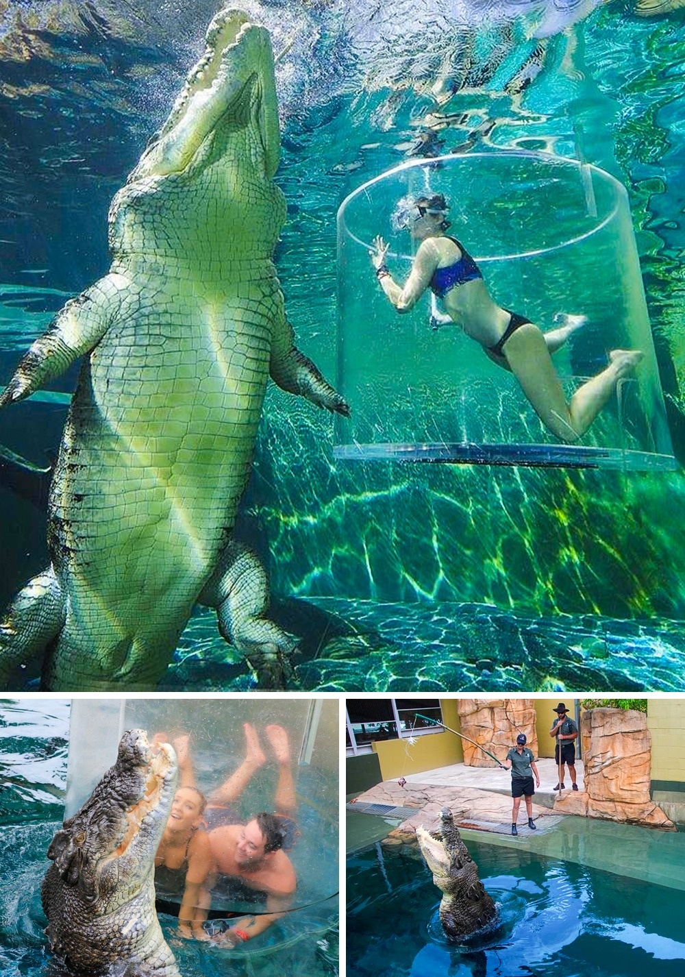 Головна визначна пам'ятка австралійського міста Дарвін — басейн з гігантськими крокодилами, довжина яких досягає 5 метрів. В акваріум можна поринути в міцній скляній капсулі — «клітці смерті», але, говорять, вирішуються не всі.