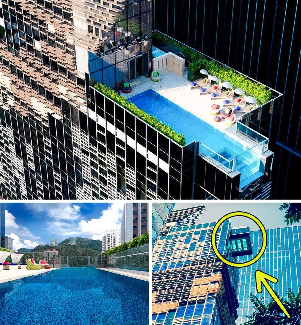 Басейн готелю Indigo буквально висить в повітрі, над 29-м поверхом будівлі. З нього відкривається мальовничий вид на Гонконг, а скляне дно дозволяє розглянути під водою вулиці внизу.