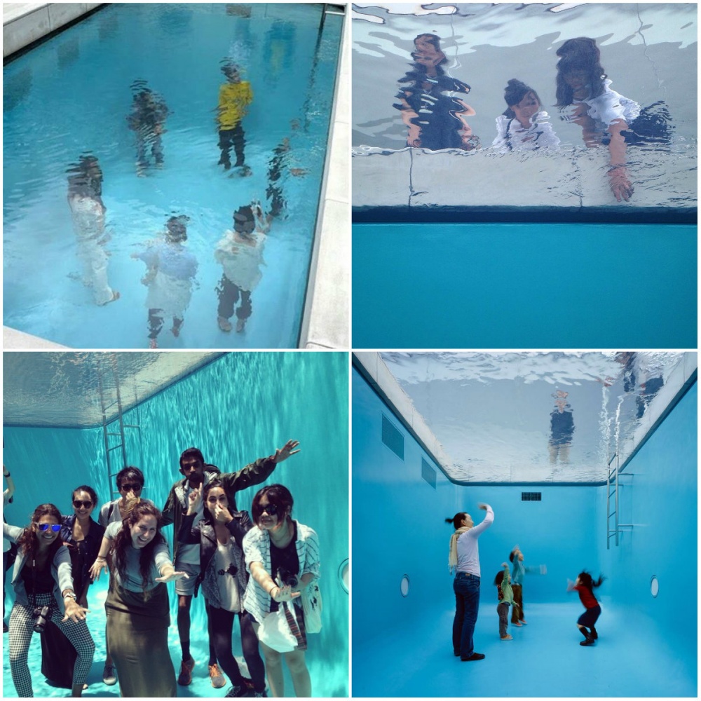 Інсталяція художника Леонардо Ерліха під назвою Swimming Pool вражає уяву — здається, що це звичайний басейн, наповнений блакитний мерехтливої водою. В дійсності її шар становить всього кілька сантиметрів, а нутро басейну порожня, і в неї може зайти будь-хто. Подібні басейни були встановлені в Центрі мистецтв Нью-Йорка і Художньому музеї XXI століття в місті Канадзаве, Японія.