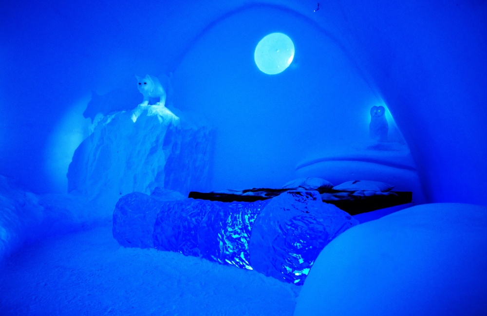 У такий крижаний казці кожна пара відчує себе Каєм і Гердою. Правда, Ice Hotel підійде лише для тих, кого не лякає температура —5—8 °С. Тут є головний зал, ресторан і бар, каплиця і номери на будь-який смак. Вишукані Art Suite з крижаними скульптурами, Ice Room з крижаною меблями і прості Snow Room. Ліжка вистелені оленячими шкурами, а вранці в ліжко подають глінтвейн. Проте ця краса недовговічна. Навесні крижаний готель витікає струмками в річку Торн.