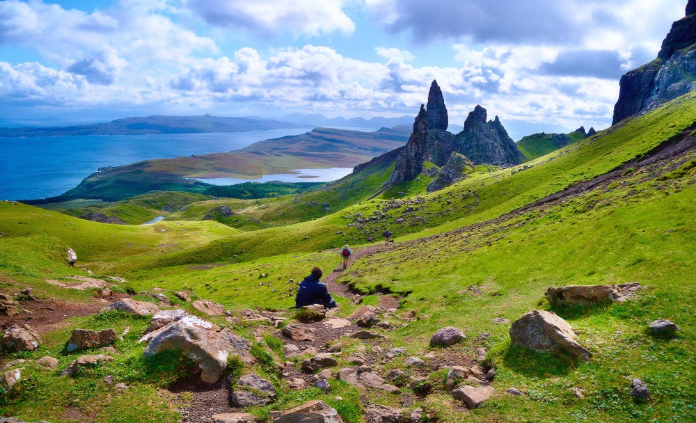 На острові Скай перед мандрівником відкриваються первозданні краєвиди. Смарагдова зелень, пагорби, скелі і сині простори, від яких захоплює дух. Пам'ятки тут теж казкові: замок Данвеган, плато Куиранг, Басейни фей і Чарівний міст. До речі, в книзі про Гаррі Поттера повідомляється, що саме тут живе Гебридский чорний дракон.