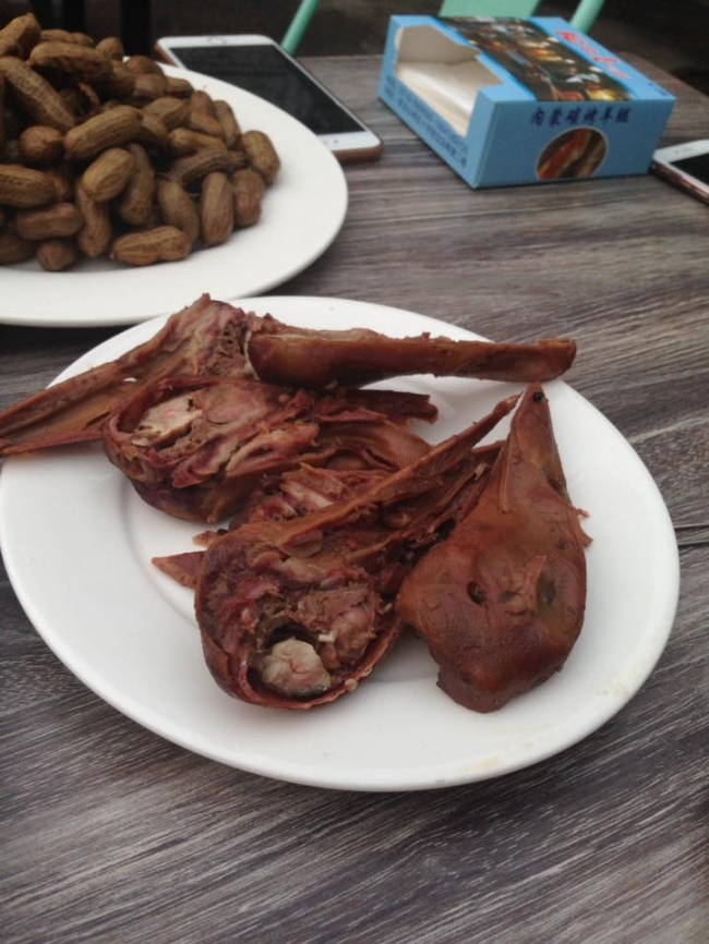 - Якщо свиняча кров виглядає досить звичайно для іноземців, а бурхливі емоції виникають тільки тоді, коли вони дізнаються, що ж це таке, то при вигляді курячих лапок багато не можуть утриматися від брезгливой гримаси. Курячі лапки з кігтиками — улюблене ласощі в Китаї. Їх коптять, варять, тушкують і смажать, в загальному, на відміну від нас, зовсім не дискримінують за анатомічною ознакою. Курка — вона курка і є. Копчені курячі лапки — це улюблена закуска до пива нарівні з ще більш екзотичними для нас копченими качиними головами. До головах тут взагалі, треба сказати, особливе ставлення. Особливо до риб'ячим. Риб'яча голова вважається делікатесом, і часто риб'ячі голови, зокрема суп з них, коштують набагато дорожче, ніж сама риба.