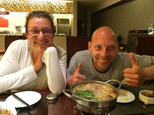 - Більш екстремальний варіант китайського раціону — згущена свиняча або качина кров. Зовні схоже на пласти звичайного тофу, тільки темно-червоного кольору, навіть більше коричневого. По структурі нагадує яловичу печінку. Нарізані кров'яні пласти — звичайний інгредієнт для хот-поту. Хот-пот — каструлька з бульйоном, в якій варять все що душі завгодно і потім поїдають це з соусом. Ще один поширений варіант приготування — кров, тушкована в гострому соусі з пекучого перцю з пророщених паростків сої. На мій погляд, нічого особливого, але китайці кажуть, що це блюдо особливо корисно для жінок по причині змісту великої кількості заліза.