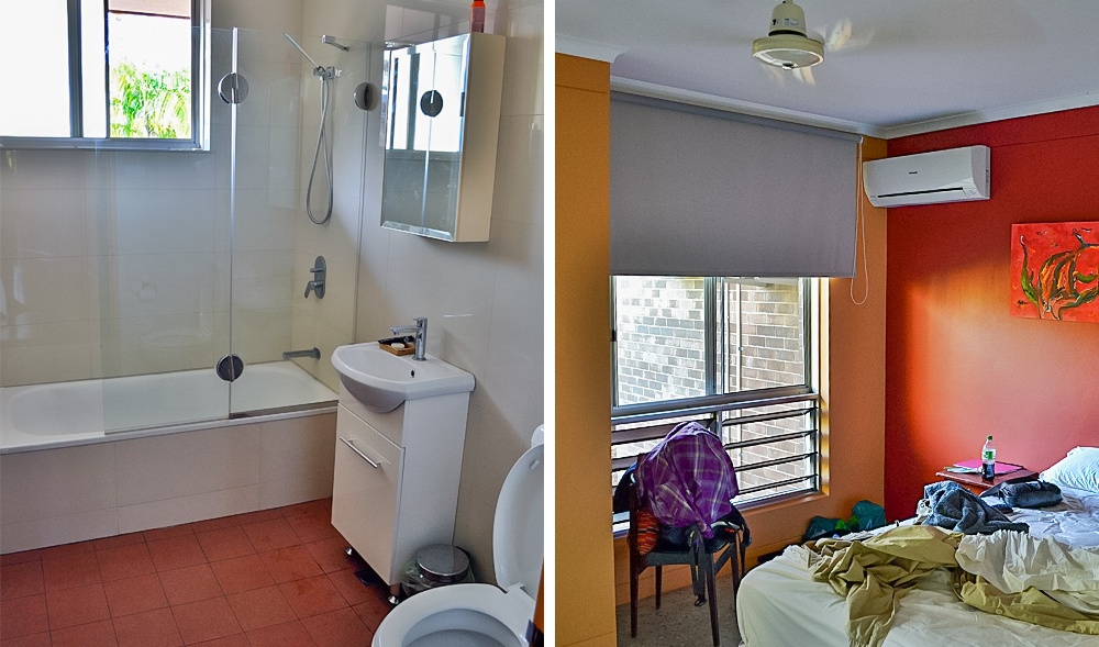 Середньостатистична австралійська сім'я живе в будинку з трьома спальнями площею приблизно 80-120 кв. м. Крім спалень там є ще вітальня, кухня, іноді друга вітальня, іноді маленька кімната для прання — бар, ванна, два туалети і гараж. Двері зазвичай всі скляні. Детальніше дивіться тут.