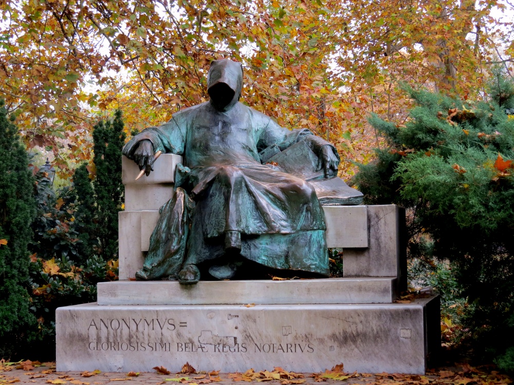 Пам'ятник Анонимусу знаходиться в столичному парку «Варошлігет». Це самий таємничий пам'ятник в Угорщині. Досі історики так і не з'ясували, хто став його прототипом. Але одне відомо достеменно: Анонімус був автором творів «Діяння угорців» XII століття.