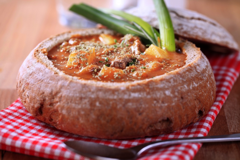Це одночасно перше і друге блюдо є кулінарної візитною карткою Угорщини. Традиційно суп-гуляш подається в свіжому хлібі з рум'яною скоринкою або в невеликих тарілках. Ситно і дуже смачно!