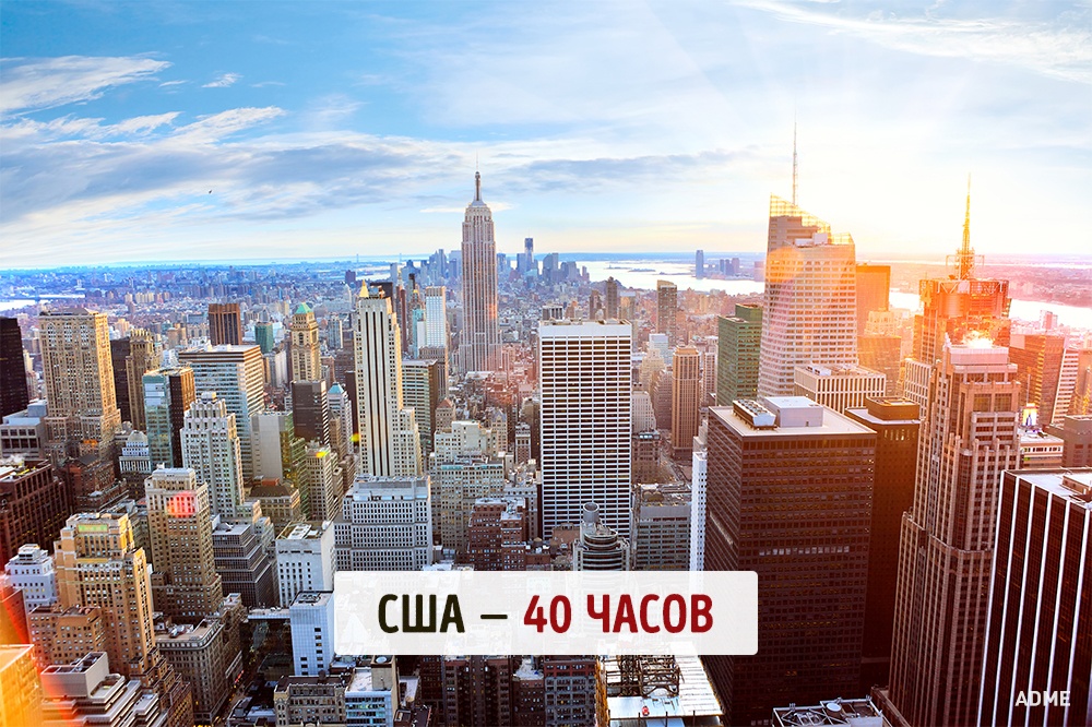 Поняття ідеальної робочого тижня у кожної країни різні. Наприклад, Франція вважає, що за 35 годин можна встигнути зробити все, в той час як жителям Колумбії і 48 годин на тиждень недостатньо.
