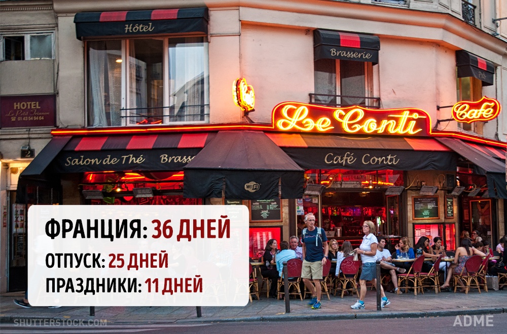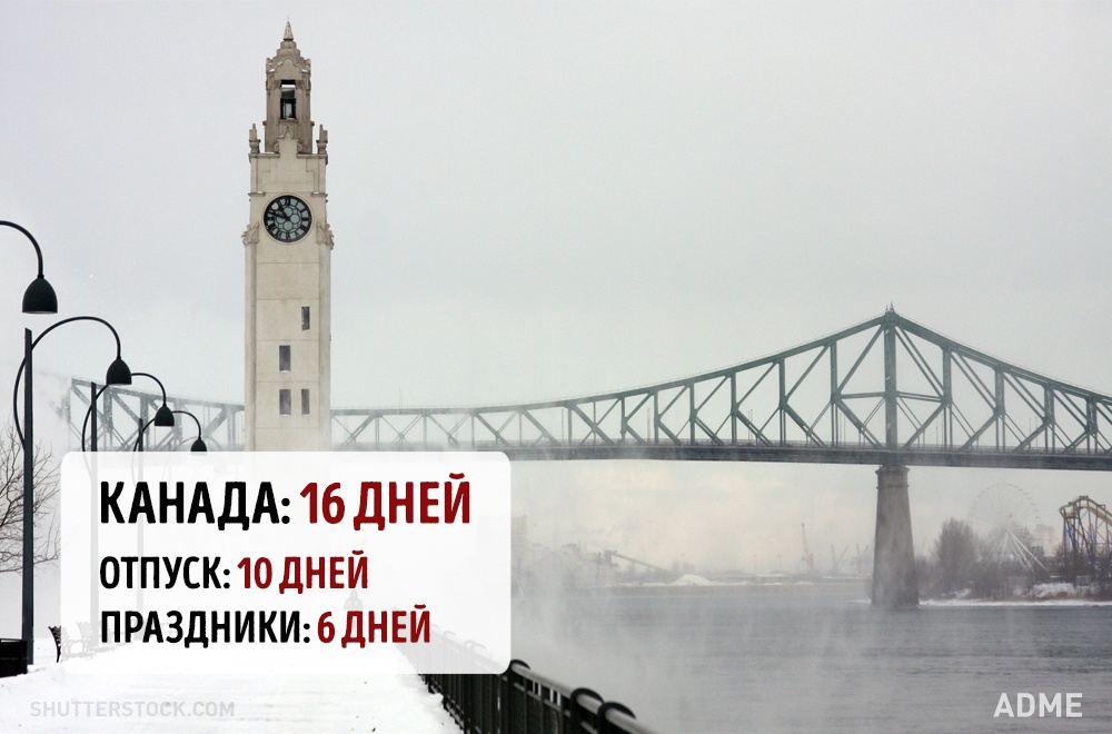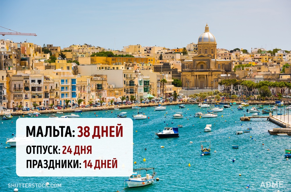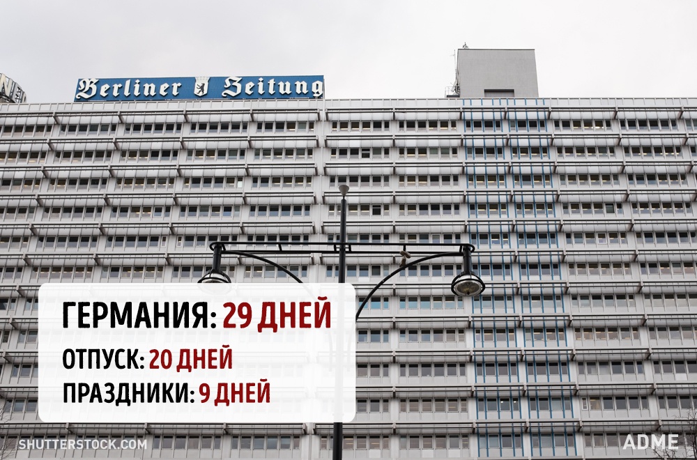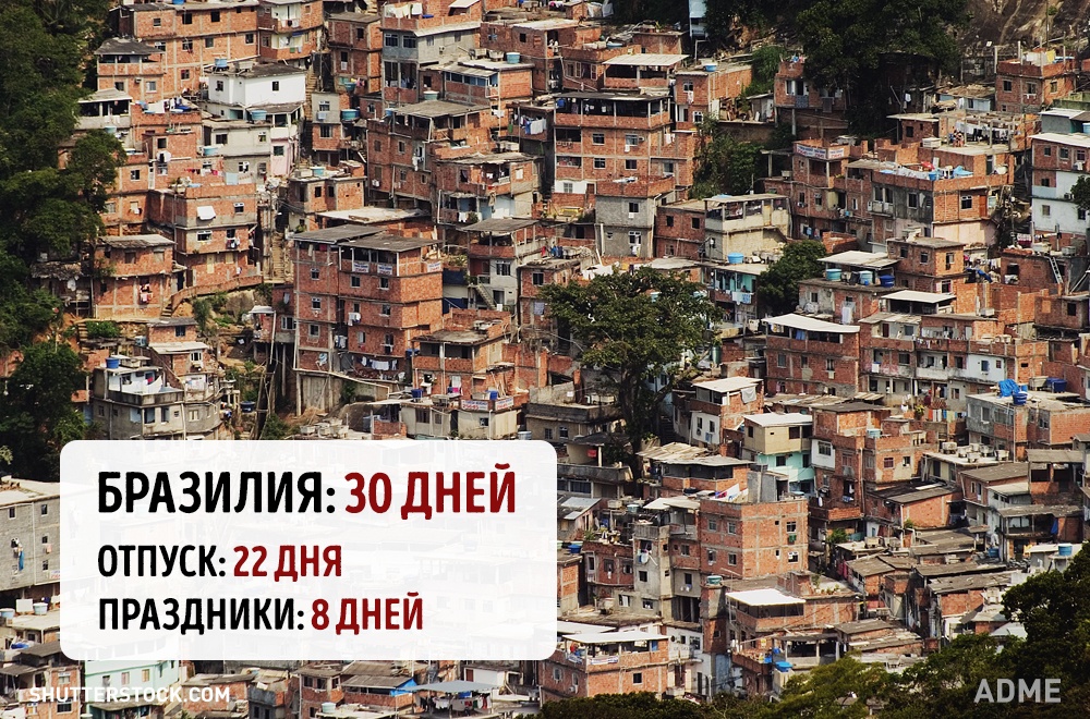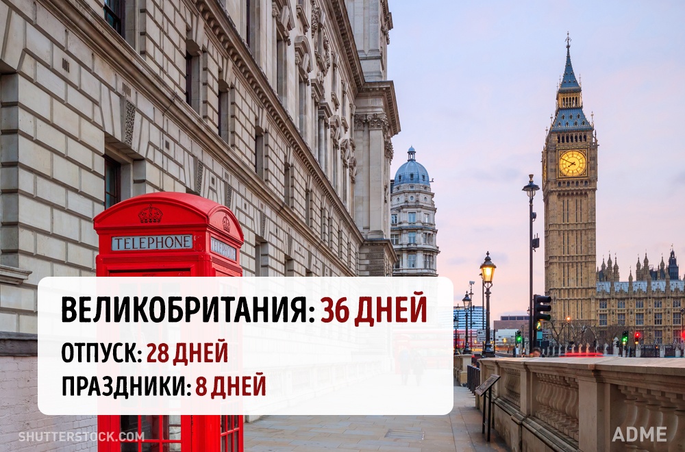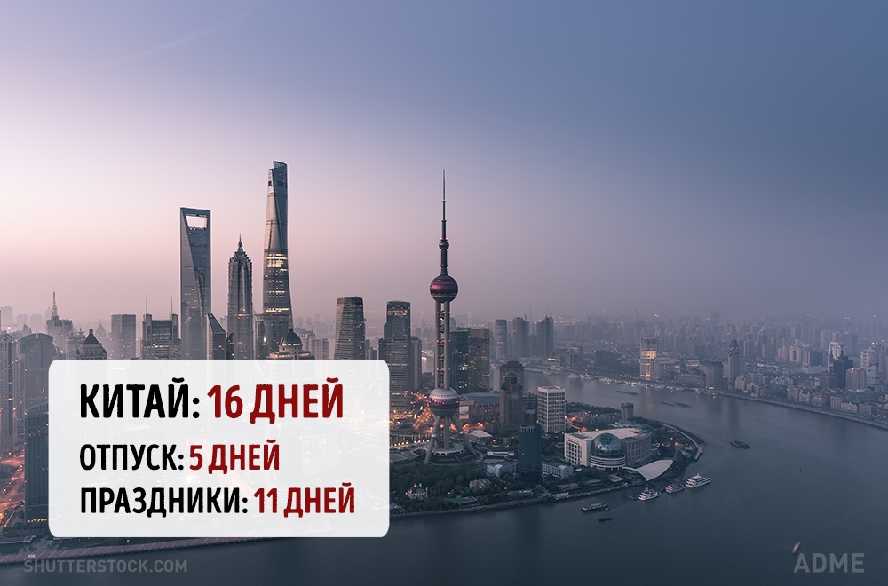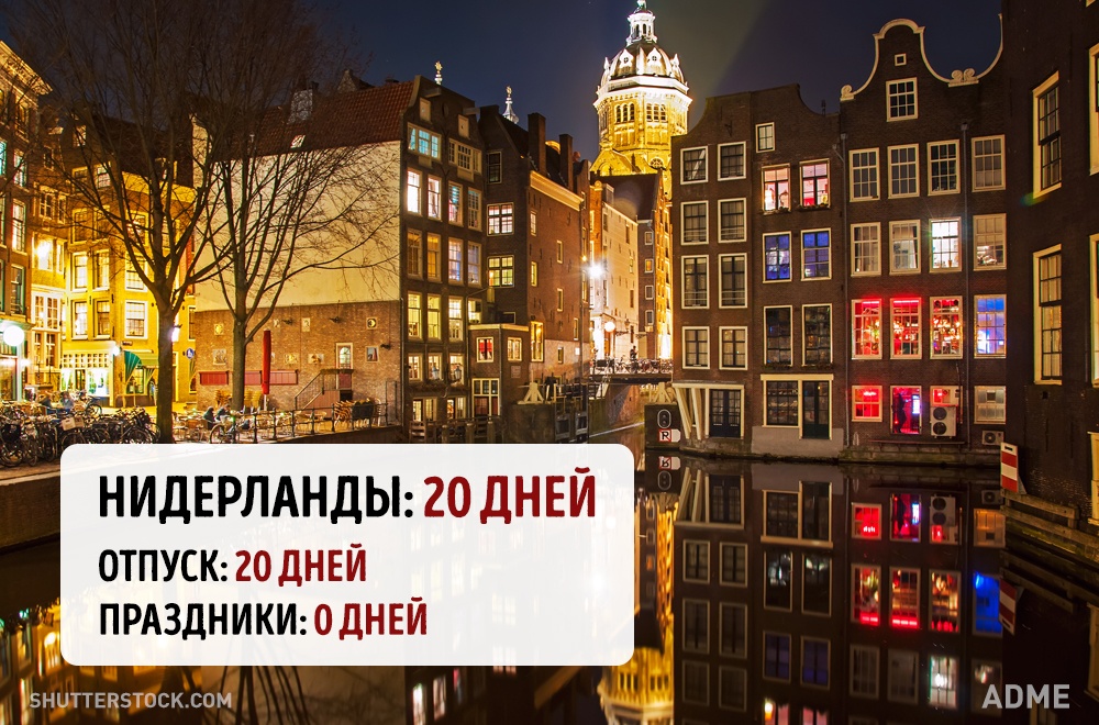 Social.org.ua задався питанням, а скільки днів відпочивають від роботи в інших країнах? При підрахунку ми враховували мінімальний відпустку без урахування вихідних і лише оплачувані державою свята. Варто відзначити, що в кожній країні є свої нюанси. Наприклад, в США відсутній законодавство у сфері відпусток, все залежить від правил всередині кожної окремої компанії. А в країнах Азії брати відпустку повністю взагалі вважається поганим тоном, тому відпочивають вони значно менше, ніж дозволено офіційно.
