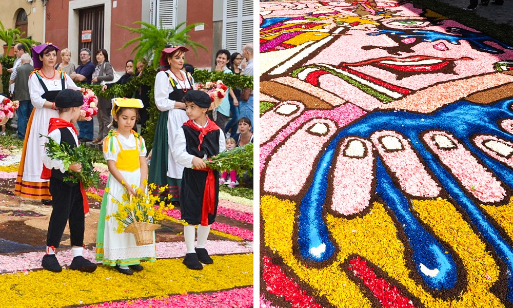 Цей фестиваль веде свою історію від 1778 року, коли квітковими композиціями місто Дженцано-ді-Рома прикрашався до червневого свята Тіла Христового. Сьогодні фестиваль — це масштабний захід, під час якого головна вулиця міста Віа Беларди покривається яскравими квітковими композиціями на біблійні та білярелігійні теми. Цілих три дні місто потопає у квітах, а закінчується свято урочистою процесією до церкви Санта-Марія делла Чіма.
