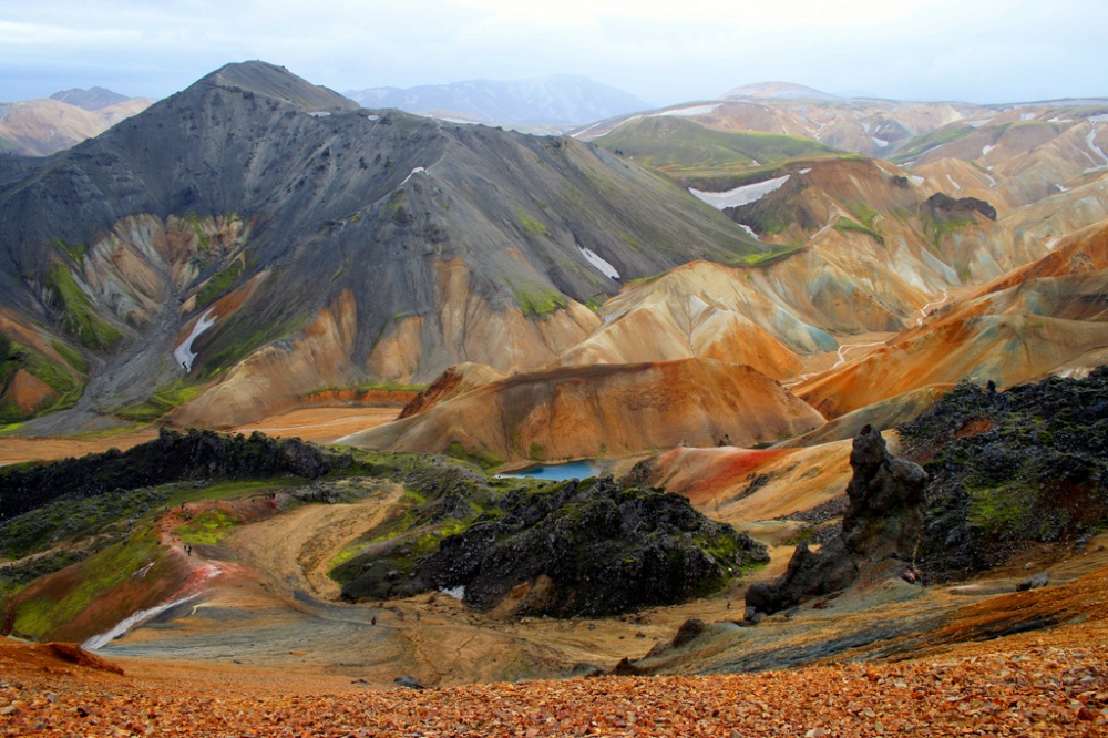 Охолоджена лава і гірські породи сформували гіпнотичний і яскравий малюнок, який можна спостерігати з липня по вересень.