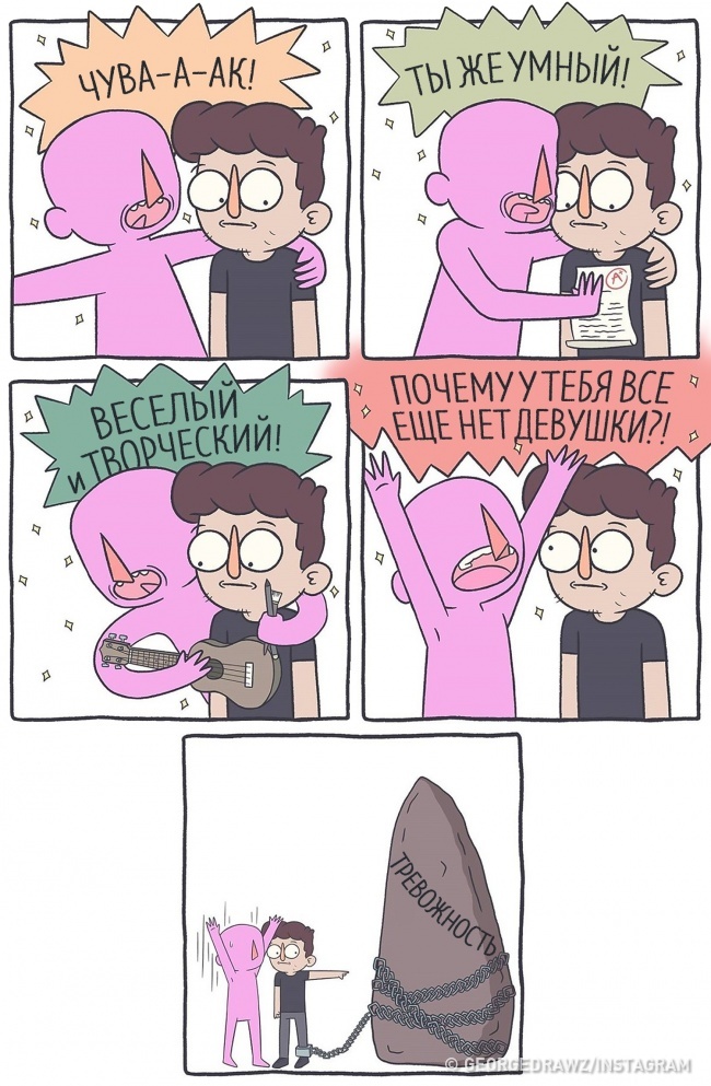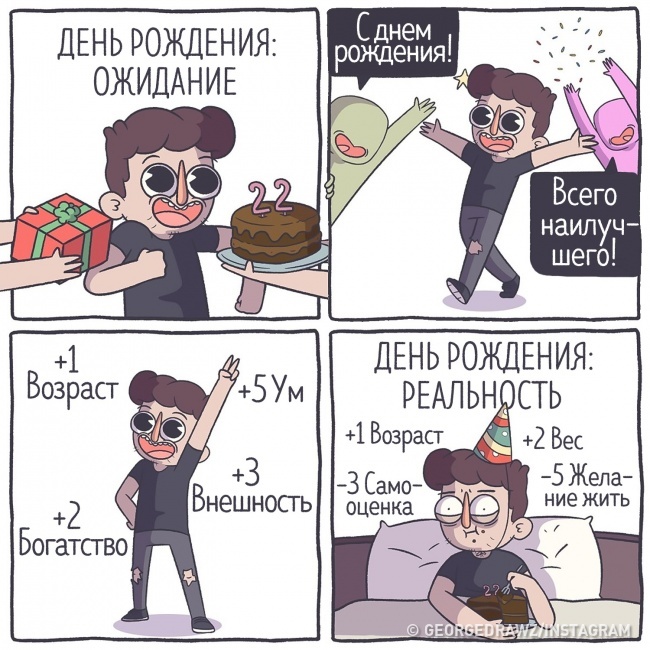 Так що якщо вам трохи більше 20 і ви часто ловите себе на думці: «Як жити-то цю незрозумілу життя?» не впадайте у відчай. Джордж задається тим же питанням, але підходить до проблеми творчо і з гумором обігрує труднощі життя 20-літніх у своїх коміксах.