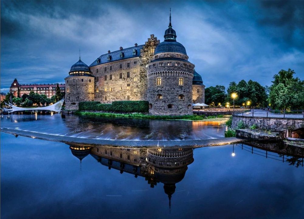 Середньовічний замок у місті Еребру, розташований на маленькому острові посеред річки.