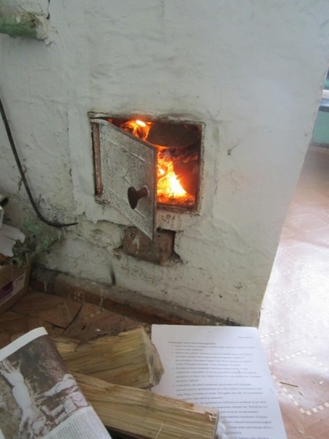 Після сніданку обов'язкове захід — топка печі. За ніч вітер видуває майже все тепло, і топити доводиться кожен день. Ця пічка опалює два приміщення. Мою кімнатку і сусідню — приймальню, там я спілкуюся з пацієнтами. Необхідна умова на прийомі — це тепло.